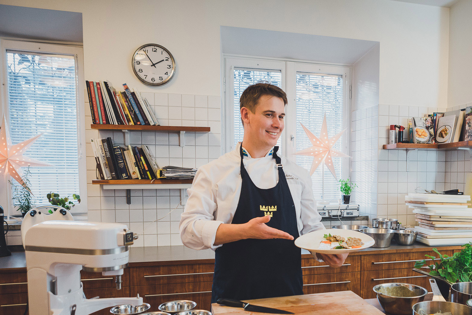 23 listopada 2017 w rezydencji Ambasadora Szwecji gościli blogerzy i dziennikarze kulinarni. Wspólnie z Michałem Godyniem, szefem kuchni w rezydencji przygotowali zapiekankę Pokusa Janssona (Janssons frestelse), śledzie oraz szafranowe bułeczki Lussekatter. Było smacznie i wesoło!